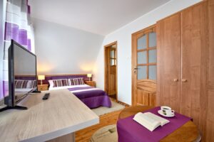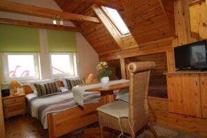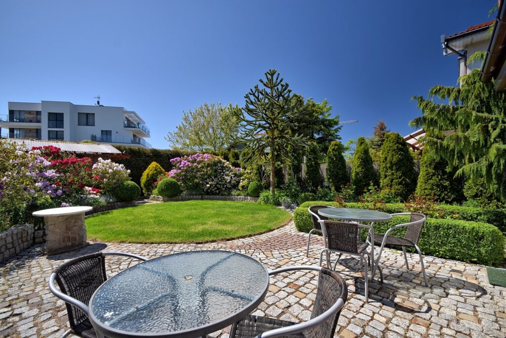 Dom „Gościnny Ogród” położony jest w zachodniej części miasta, w cichej i spokojnej dzielnicy willowej. Od czystej i szerokiej plaży dzieli nas ok. 20 minut drogą spacerową, która w całości prowadzi przez tereny zielone, objęte ochroną przyrody w ramach programu Natura 2000.